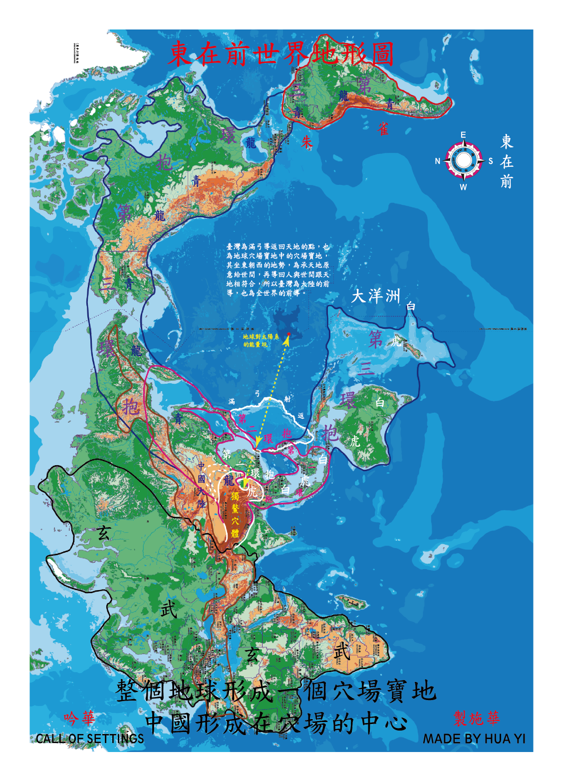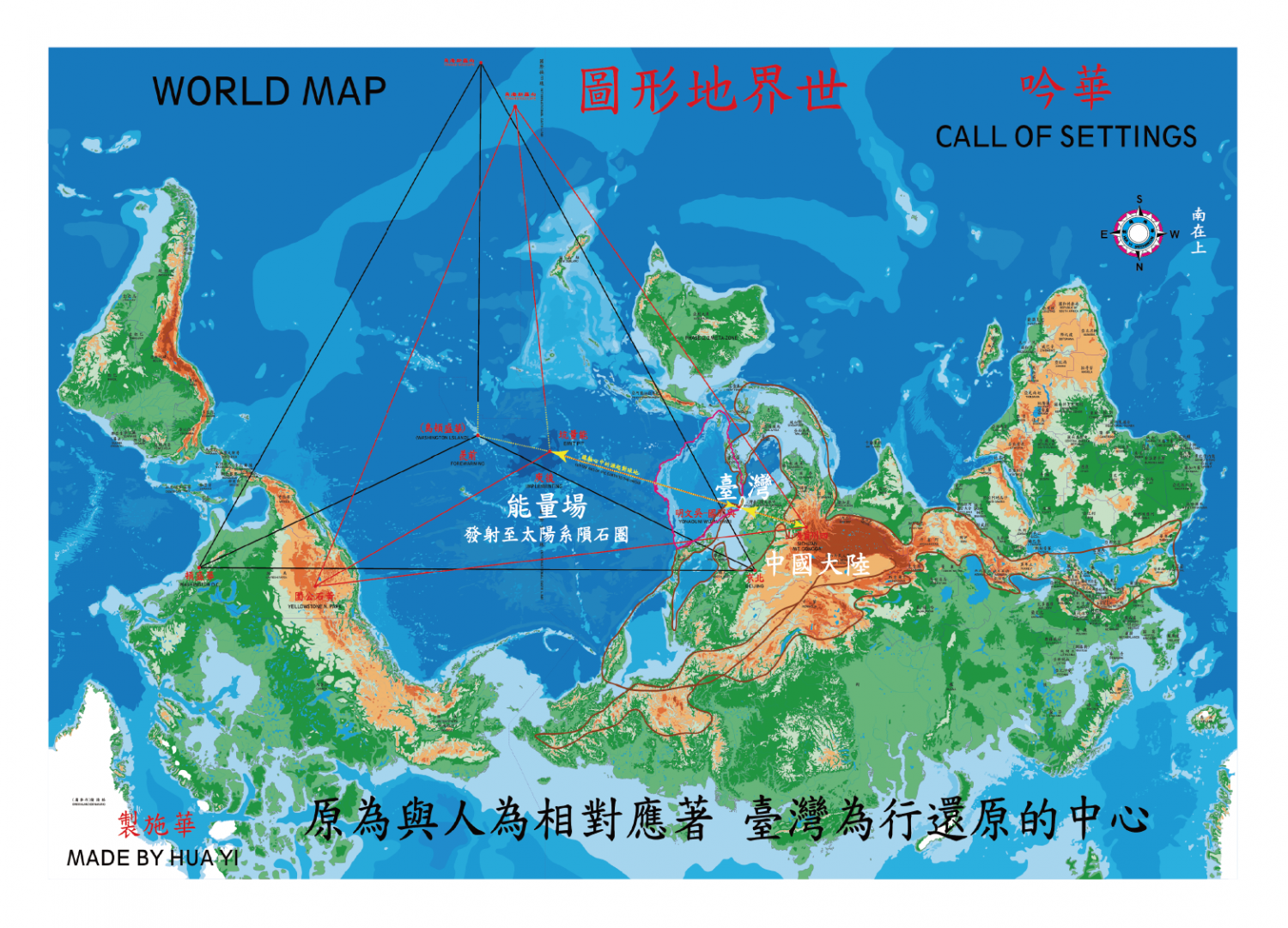 於是,人類在邁入從事要還原的高科技時代,以依身為世界的中心、世界的主導者和掌有一方的主導者等等,就勢必要懂得地球所形成給與知原、為前導的導致機技能量場(請看地球儀南在上和東在前的地形圖,其天地經東西,人經南北,而坐北坐西同一體且出水口為同在東南),那對臺灣島為在地球負有對太陽、太陽系行符的中心,其成臺灣為世界的前導和中國為在世界地理中心的前導,就要非常的瞭解與能長期聯結、掌握和結合為一體。因此緣故,以依臺灣就絕不能依旣有的模式與體制機制來規畫,而是必須依三與四原機制和臺灣島原賦有能給全世界、全人類和整個科技的皆能做符成完整,來規畫地球其形成給與對接和結為一體的前導---臺灣以及全世界皆還沒有的等待給予的能量場。且也才有生適者、備齊者、已足者、具整體觀者和退休者皆要來臺灣做完整的結合,做化缺陷建大同、自我精華的再提升、給眾皆的能更好等等貢獻世間,完成各自為人的使命,那人才為真正的成人成完整。